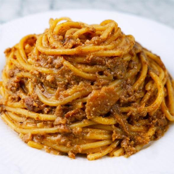 たとえば和牛ビステッカは、国産和牛を炭火で香ばしく焼き上げ、肉本来のうまみをストレートに引き出した一皿。前菜には焼きタラバ蟹を用い、甘みと香ばしさを繊細に組み立てています。また、名物料理として有名な穴子の香草蒸しは、和の食材にハーブの香りを重ね軽やかな余韻を残しています。こうした原田シェフの料理哲学は、今回ご紹介する牛頬肉の赤ワイン煮にもつながっており、GINZA FROZEN GOURMETで展開する高級冷凍食品としての完成度を高めています。ここからは、新しくラインナップに追加された「国産黒毛和牛頬肉の赤ワイン煮」と、GINZA FROZEN GOURMETですでにご提供しているパスタをご紹介していきましょう。